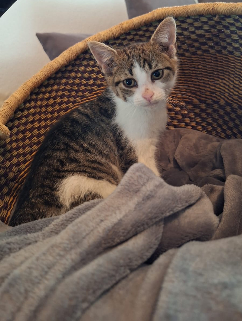 Kater 1: ca 10 Wochen verspielt, bissl grumpy und territorial gegen andere Katzen, aber versteht sich prima mit seiner Ziehschwester Mädel 1