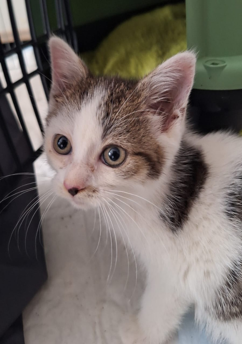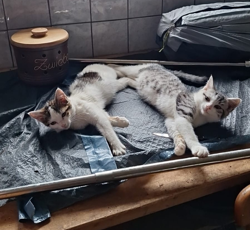 Kater 3: freundlich aber scheu ca 12 Wochen, versteht sich prima mit anderen Katzen, aber noch ängstlich gegenüber Menschen