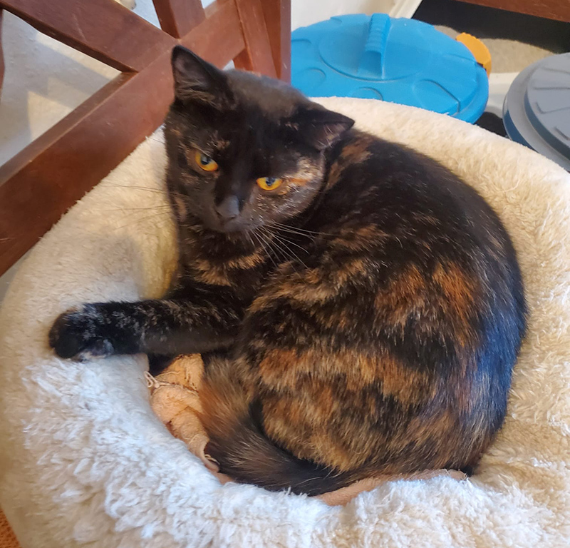 Minusch ist eine wunderschöne 2jährige Schildpatt-Katze. Sie ist sehr lieb und zutraulich und auch sehr neugierig. Sie möchte überall ihr kleines Näschen mit reinstecken und genießt die Zeit mir ihrem Menschen sehr.