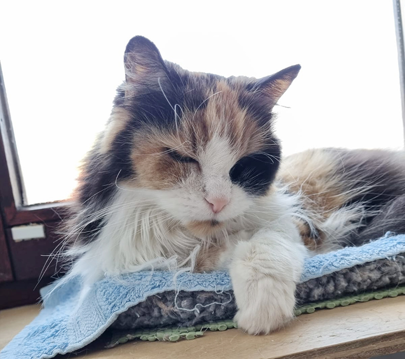 Minka ist eine dreifarbige Glückskatze. Obwohl sie im Moment das Glück etwas verlassen hat. Ihr Frauchen ist plötzlich verstorben und Minka kam zu uns. Sie ist 10 Jahre alt und versteht jetzt die Welt nicht mehr. Sie ist am Anfang etwas scheu und ängstlich, aber dann wir sie zu einer Riesen-Schmuserin. Sie ist wirklich sehr lieb.